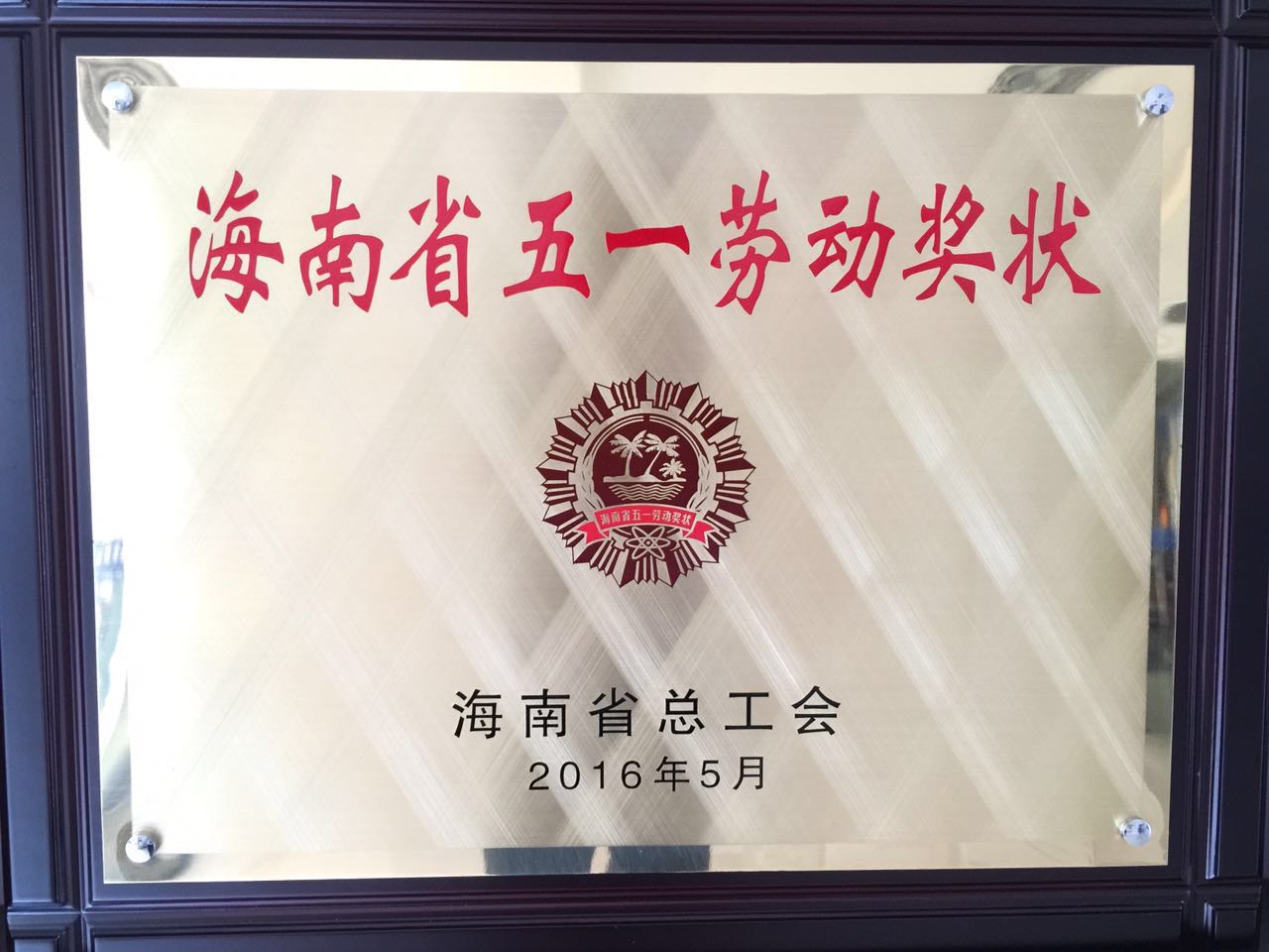海南省總工會(huì)授予瓊海勝達(dá)“海南省五一勞動(dòng)獎(jiǎng)狀”稱號(hào)