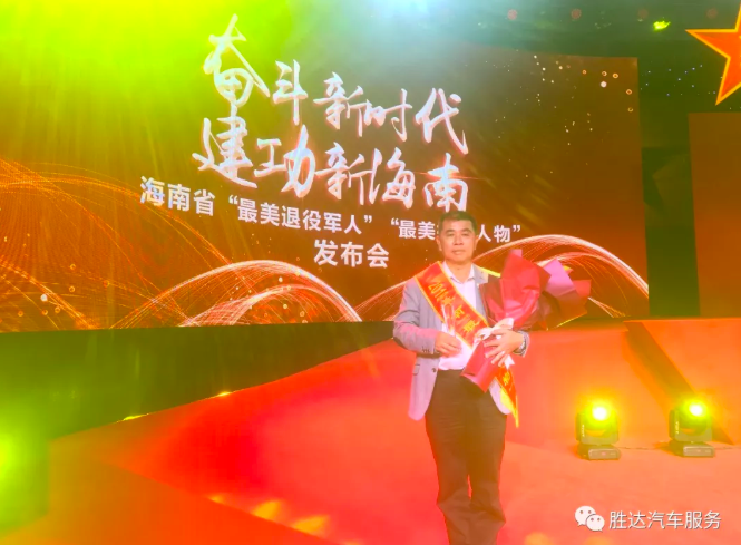 瓊海勝達(dá)汽車銷售服務(wù)有限公司董事長(zhǎng)、總經(jīng)理陳丁勝,在1月13日由中共海南省委宣傳部、海南省退役軍人事務(wù)廳、海南省軍區(qū)政治工作局、海南廣播電視總臺(tái)主辦,海南新聞?lì)l道承辦的奮斗新時(shí)代 建功新海南——海南省“最美退役軍人”“最美擁軍人物”發(fā)布會(huì)上,榮獲海南省“最美擁軍人物”稱號(hào)。