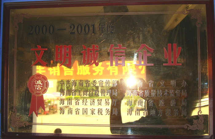 2000年度至2001年度榮獲文明誠信企業(yè)