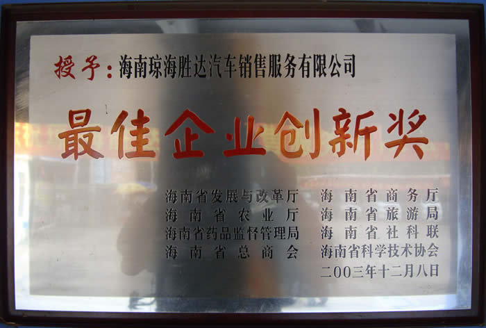 海南省瓊海勝達(dá)汽車銷售服務(wù)有限公司在2003年12月08日榮獲由: